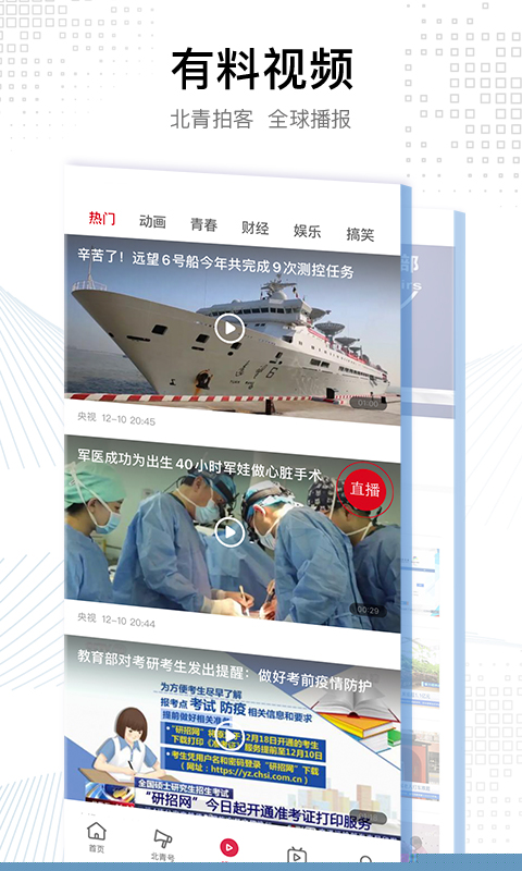 在视频专区,可观看直播回放或点播各类新闻短视频。
