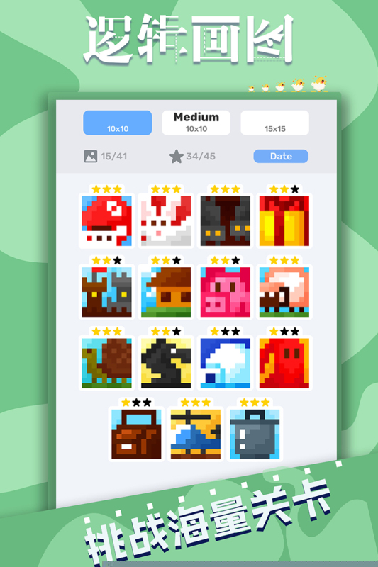 逻辑画图九游版是一款融合了数字推理与像素艺术创作的益智休闲游戏,通过解读行列数字提示,在网格中填充或标记方格,最终揭示出一幅幅精美的像素图画,在烧脑挑战的享受艺术解谜的独特乐趣。
