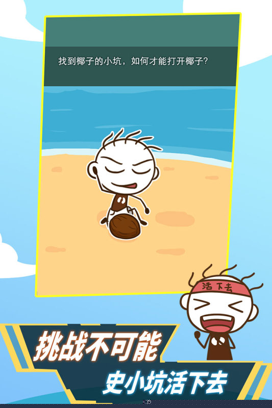 史小坑!活下去!oppo渠道服是一款以荒诞生存挑战为核心的冒险手游,将扮演主角史小坑,在一个充满无厘头谜题与奇葩设定的世界里展开求生之旅。其独特的解谜逻辑与幽默风格,为生存类题材注入了新鲜血液,带来别具一格的烧脑与欢乐体验。
