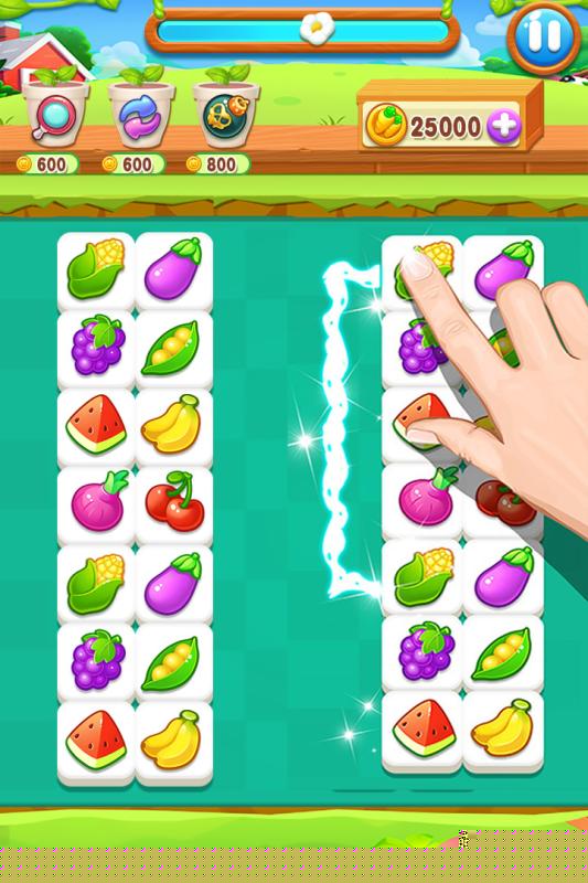 核心目标是找出棋盘上两个相同的果蔬图标,并用三根以内的直线连接起来以完成消除。