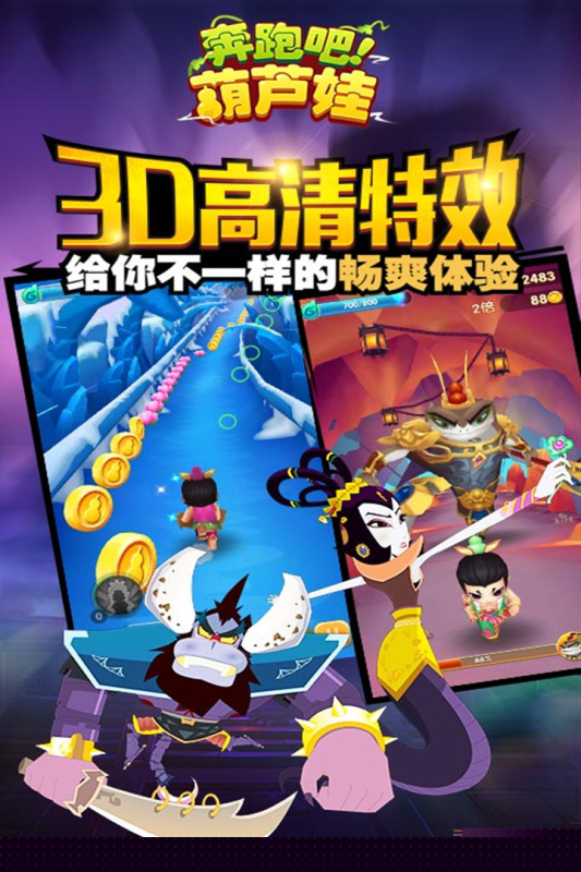 奔跑吧葫芦娃华为版是一款基于经典动画IP改编的横版跑酷类手机软件,在华为软件市场独家发行。其将葫芦兄弟的奇幻冒险与快节奏的跑酷玩法巧妙融合,将操控各具异能的葫芦娃,在充满挑战的奇幻场景中疾驰,体验重温童年记忆与指尖竞速的双重乐趣。
