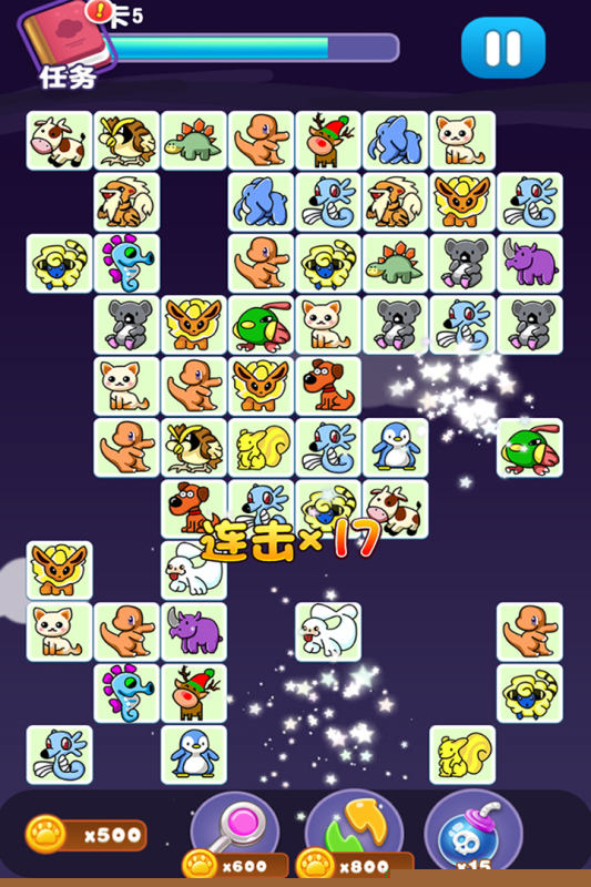 核心目标是寻找并连接两个相同的宠物图标,连接路径不能超过两个转弯。