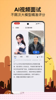 在模拟面试模块,可以选择AI智能考官进行单次练习或系列训练。