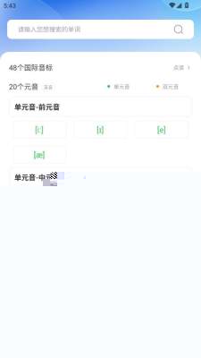 初次启动后,可根据引导完成水平测试,系统将据此推荐初始学习内容。在主界面选择相应模块,如音标或词书,即可开始学习。