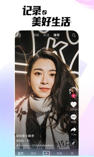 点击首页创作按钮录制或导入视频,进行配乐、特效等编辑,添加描述与话题后即可发布至个人主页。