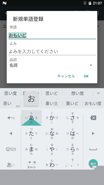 输入罗马字或直接假名,系统提供候选词。