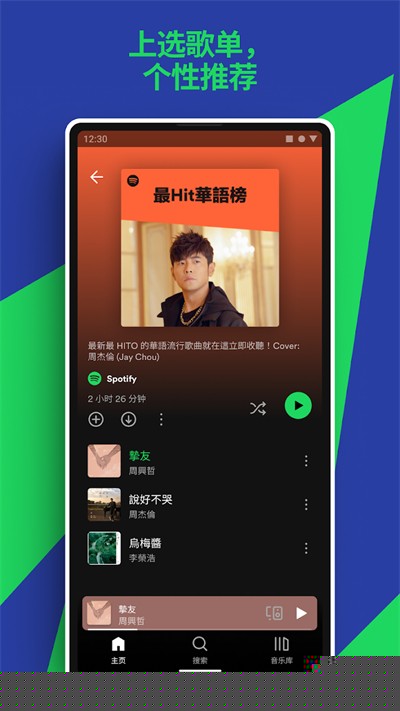登录后即可搜索艺人或曲目,开始播放与收藏音乐。