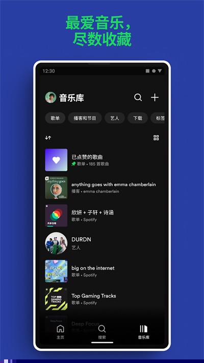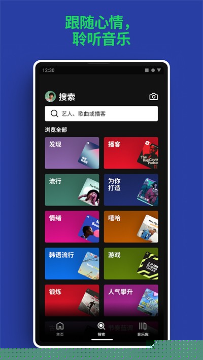 1、在本站下载安装好打开spotify后,在搜索页面中输入歌曲名字或者艺人名字。