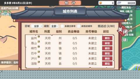 稳定盈利后需拓展版图。研究各城市物价规律,规划长途贸易路线,接取官府或商会的委托任务以获取额外收益与声望。