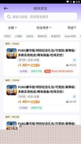 支持按游戏类型、账号等级、价格区间等条件进行精细化筛选,快速定位目标。