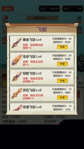 核心玩法围绕养成展开,优先提升飞剑等级与品质,解锁更强技能特效,积极搜集并激活各类上古神器。