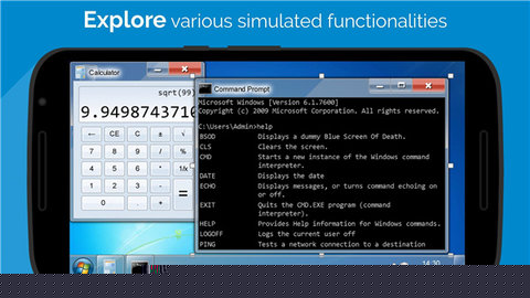 win7模拟器是一款高度还原经典操作系统的移动端模拟工具,其精准复刻了Windows 7的视觉界面与核心交互逻辑,让用户在移动设备上也能重温熟悉的桌面环境,便捷地进行文件管理、软件运行与娱乐体验。