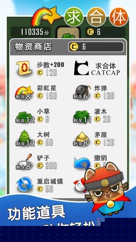 注意合理规划初始物品的位置,为后续可能出现的连锁合成预留空间。当出现巨猫时,可将其引导至角落并用建筑包围;飞天猫则需使用炸弹道具进行清除。