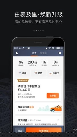 资料审核通过后,即可登录上线。系统会根据司机位置自动推送附近订单,点击即可接单。