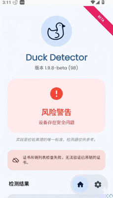 Duck Detector检测是一款专注于安卓系统Root与Magisk隐藏状态深度验证的专业工具,通过系统级扫描,精准识别包括su文件、异常挂载点、框架模块及系统完整性在内的多种潜在风险,为追求设备安全与兼容性的高级用户提供关键的安全评估服务。