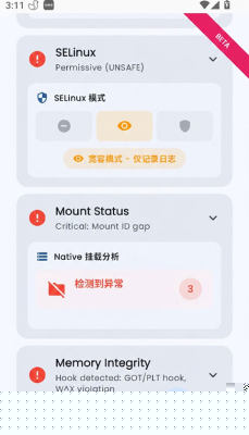 报告会清晰列出如su二进制文件、异常系统挂载等具体风险项。每一项均有简要说明,用户可根据提示判断是否需要及如何进行修复操作。