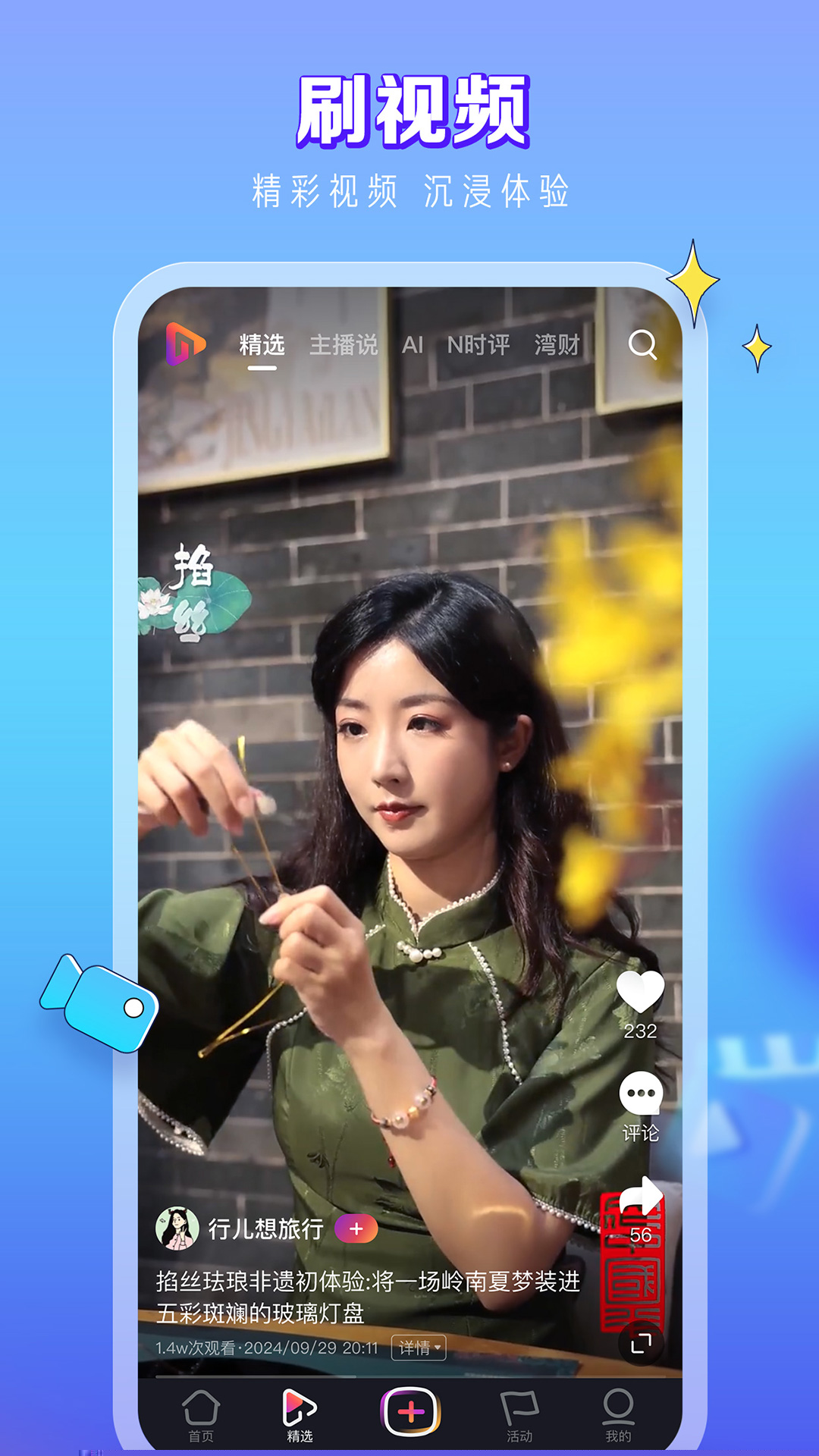 在本站完成下载与安装后,启动软件。主界面精选频道提供全屏沉浸式视频流,可直接上下滑动切换内容。