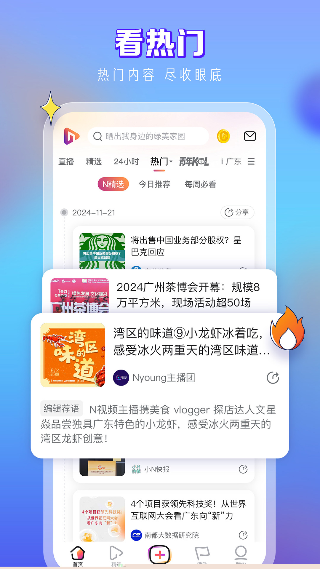 N视频是一款由南方报业传媒集团重点打造、南方都市报负责运营的新锐媒体客户端,定位为视频版广东发布,以年轻人为核心用户群体,立足广东及粤港澳大湾区,辐射全国,通过年轻化的表达与呈现方式,构建新型青年社交圈与权威视频内容平台。