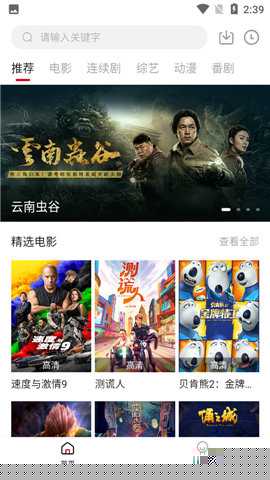启动软件后,可通过顶部搜索栏输入片名或演员名快速定位目标影视内容。