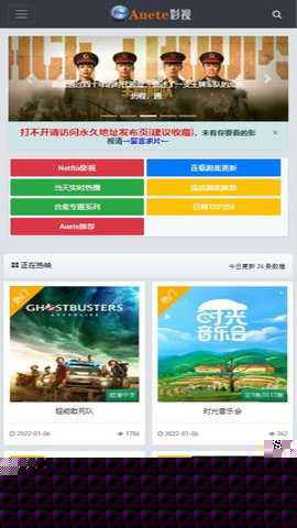 访问Auete影视网页版,在搜索框输入目标影视名称或通过分类导航查找内容。