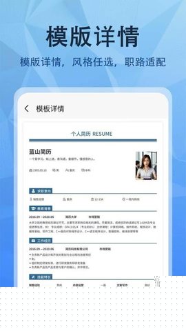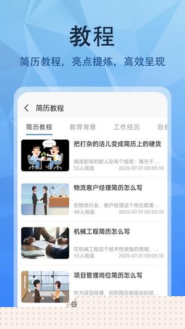 编辑过程中,可随时查阅内置的简历撰写指南与职场攻略,优化内容表达。完成编辑后,即可导出最终简历文档。