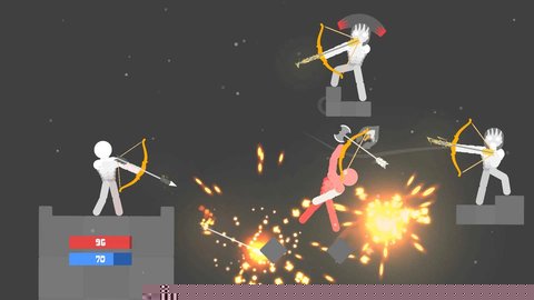 格斗狂欢战是一款以火柴人为主角的横版动作射击作品,将操控角色使用弓箭进行战斗。核心玩法围绕精准的力度与角度控制展开,每一次射击都需精确计算,命中目标后触发真实的布娃娃物理反馈,带来夸张而有趣的击倒效果。作品巧妙融合了射箭的精准性与格斗的爽快感,配合多样的箭矢选择和技能成长,为提供了兼具策略与娱乐的独特体验。