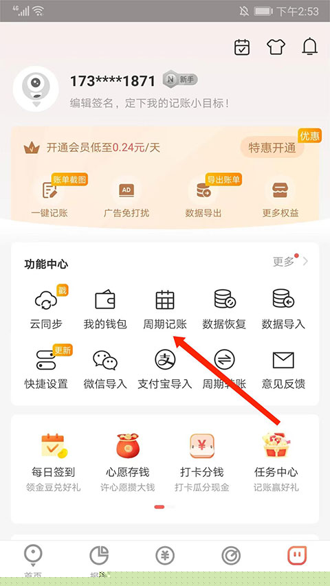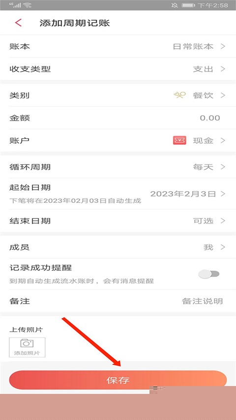 通过周期记账功能,预先设置固定周期的收支项目。