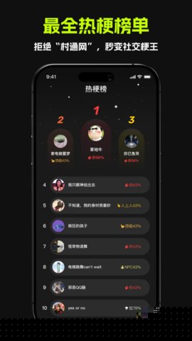 主界面设有实时更新的热梗榜单,该榜单基于内容热度与互动数据动态排序,是发现当前社区流行趋势最直接的入口。
