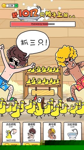 抓10亿只鸭子是一款以轻松点击为核心玩法的休闲娱乐软件,其核心目标是通过简单的触屏操作收集各式各样的鸭子。伴随着欢快的背景音乐,用户每成功捕获一只鸭子即可获得金币,用于升级抓取能力或扩充存储空间。关卡设计富有层次,每个阶段都设有独特的收集目标,激励用户探索并解锁稀有鸭种。画面采用可爱的卡通风格,营造出温馨治愈的视觉氛围,适合全年龄段用户在碎片时间体验放松与乐趣。