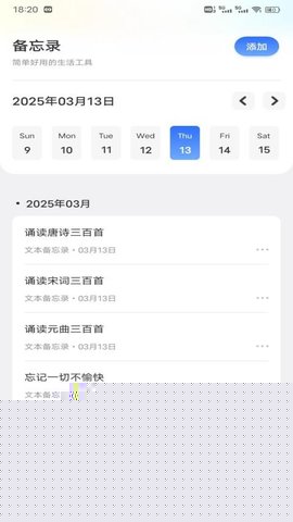 收录的诗词均配有经过考据的注释和译文,减少了用户自行查证的时间。分类检索逻辑清晰,支持按朝代、作者、题材等多维度查找,定位效率高。附加的备忘功能将阅读学习与日常规划结合,提升了软件的综合实用性。