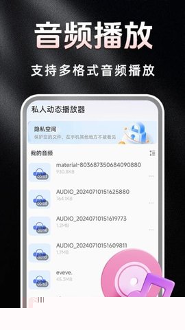私人动态播放器是一款专注于本地多媒体播放的软件支持广泛的视频与音频格式,为用户带来流畅的高清视听体验,集成了隐私加密与便捷的小窗播放功能,在保障用户数据安全的也极大地提升了多任务操作的灵活性,是管理个人影音内容的得力助手。