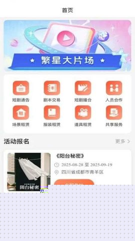 繁星大片场是一款面向微创作者与企业的综合性短剧制作服务软件,通过整合剧本、服装、道具及场景等拍摄资源,为短剧创作提供从前期筹备到拍摄执行的一站式软件,有效提升创作效率与作品质量。