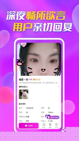 愿伴是一款专注于线上社交的软件,为用户打造安全、便捷的互动环境,通过智能匹配与丰富的社交功能,帮助用户高效结识同城好友与优质异性,扩大个人社交圈。分享生活动态,并通过多种沟通方式进行实时交流,所有用户均经过严格认证,确保交友过程的真实与可靠。