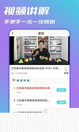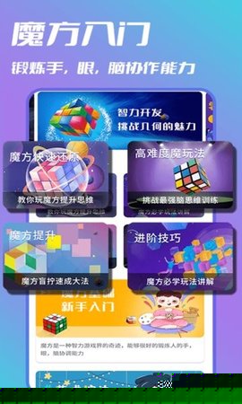 智慧魔方教程是一款专为魔方爱好者,特别是初学者设计的综合性学习软件,通过结构化的视频课程与详尽的图文指南,系统化地教授从三阶到高阶魔方的还原原理与技巧,提升用户的空间思维、记忆与手眼协调能力。