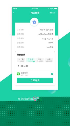 主界面提供清晰的功能分区,如物业缴费、在线报修、社区公告等,点击相应图标即可使用对应服务。
