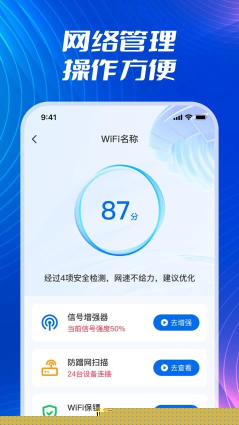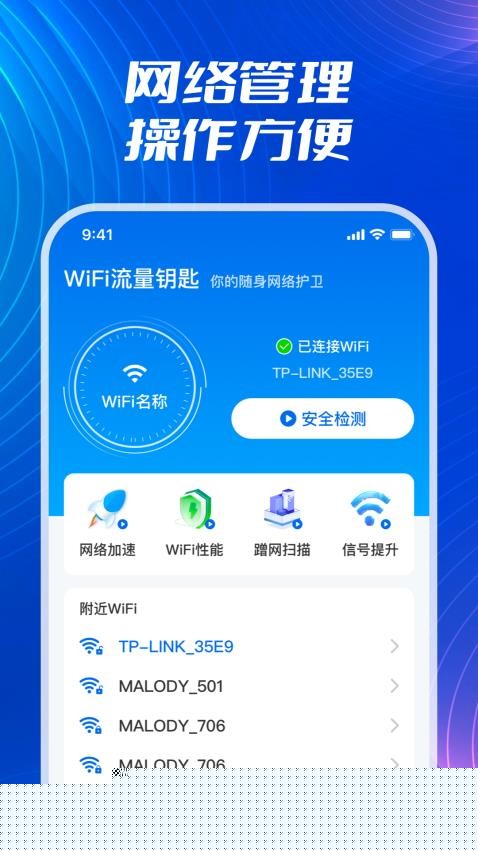 WiFi流量钥匙是一款专注于无线网络连接与流量管理的移动软件,通过智能识别周边WiFi热点并优化网络参数,帮助用户实现快速、稳定的上网体验,提供详尽的流量监控与统计功能,有效避免套餐超额,助力用户更合理地规划移动数据使用。