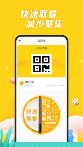 于指定取餐时段,在食堂终端通过刷脸或订单二维码验证,即可快速领取餐食。