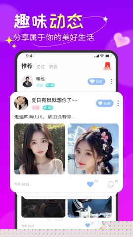 听缘是一款专注于线上真实社交的移动软件,通过双重认证机制与智能匹配算法,为用户构建安全可靠的交友环境,汇聚了经过实名验证的真实用户,并依据兴趣标签与地理位置进行个性化推荐,帮助用户高效拓展社交圈,实现在线聊天、动态分享及同城互动等多种社交功能。