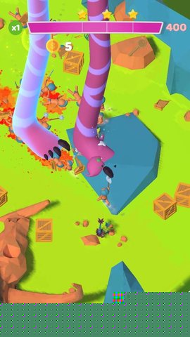 通过手指在屏幕滑动,控制巨型脚掌移动与踩踏。