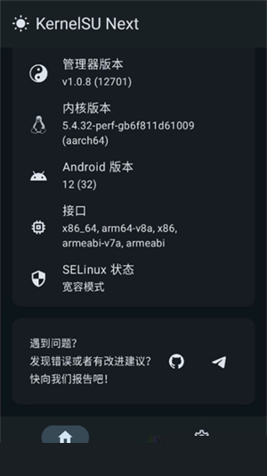 启动KernelSUnext后,若主界面未显示红色警告区域,且Root状态检测为正常,即表示内核级Root权限已成功获取并生效。