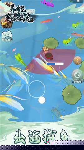 初期选择基础池塘,通过点击捕获初始鱼类。