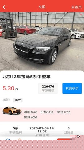 汇聚全国范围事故车、泡水车信息,车况参数透明标注。
