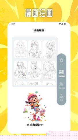内置的绘画工具设计简洁,并提供了丰富的临摹模板,能有效帮助初学者入门漫画绘制与练习。