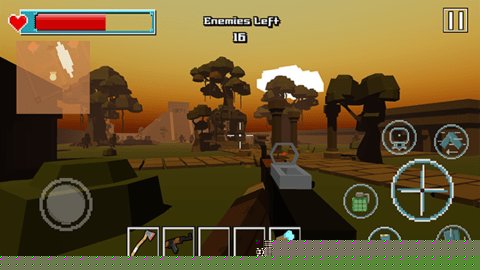 相较于同类写实风格射击游戏,其复古像素画面降低了硬件门槛,以鲜明的色彩和简洁的构图,强化了战斗场景的辨识度与趣味性。