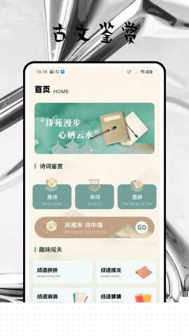 学习模块采用渐进式解锁设计,每阶段融合典故辨识与格律认知训练,完成关卡后系统自动生成学习轨迹报告。