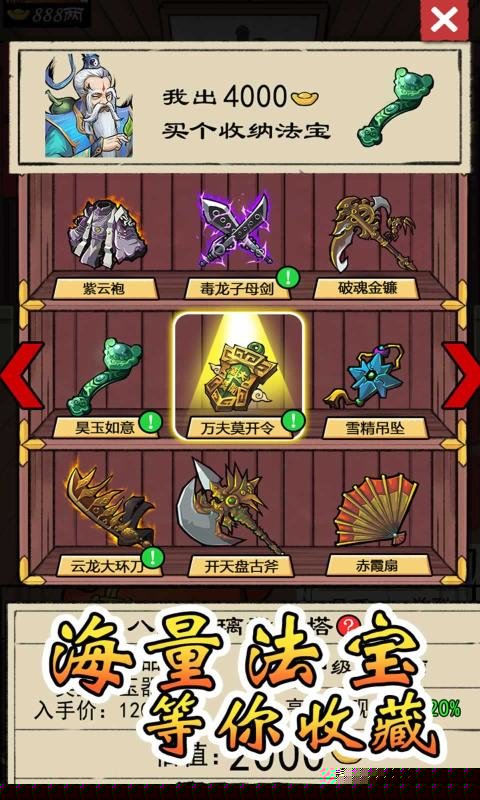 我就是首富是一款以鉴宝为核心的模拟经营类游戏,将扮演一位慧眼独具的鉴宝师,在充满东方神话色彩的仙界中,通过辨识各类奇珍异宝的真伪、进行商业交易来积累财富,最终目标是成为仙界最富有的存在。其画面精美,玩法融合了策略与休闲,带来独特的财富积累体验。