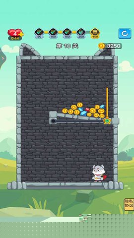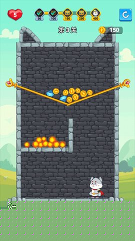 抽棍逃生是一款以物理逻辑为核心的益智解谜挑战,将扮演一只机智的猫咪,通过精准抽取场景中的支撑木棍,引导宝石与金币安全落入目标区域,从而完成营救公主的冒险旅程。其核心机制在于对物体平衡与下落轨迹的预判,结合清新明快的卡通画风,营造出既烧脑又放松的独特体验,适合全年龄段用户锻炼思维与专注力。
