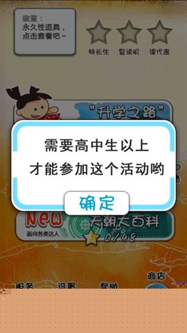 天朝教育委员会是一款以知识问答为核心玩法的休闲益智类作品,通过掷骰子移动触发不同学科问题,在轻松愉快的氛围中重温校园生涯,挑战个人知识储备,并可与好友进行趣味互动。