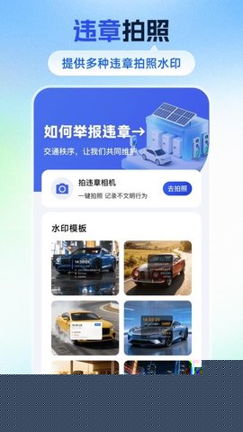 拍违章车辆是一款集违章取证与驾考学习于一体的移动软件,通过水印拍照记录交通违法行为,并结合题库练习帮助用户掌握法规知识,提升安全驾驶意识。