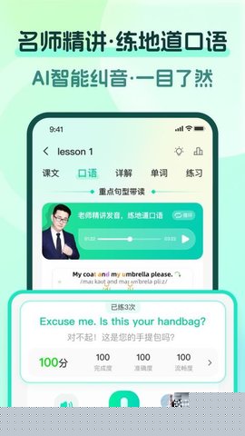 利用口语跟读模块进行发音练习,AI实时纠正发音误差。